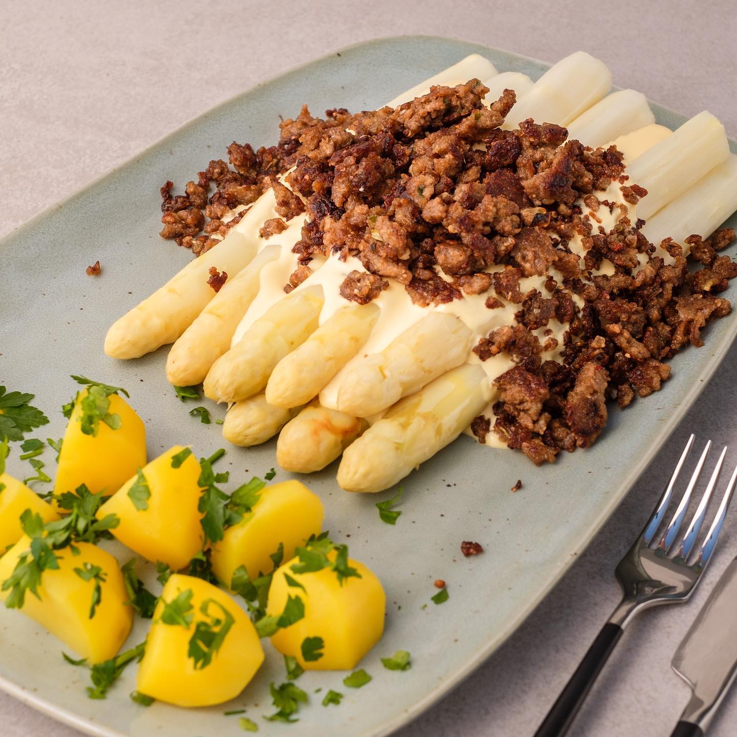 Zu 2.): Studien belegen, dass eine Veränderung der persönlichen Essgewohnheiten zu einer mehr gemüsebasierten Ernährung dann am besten gelingt, wenn das neue Produkt in Geschmack und Aussehen dem Gewohnten sehr ähnlich ist. Dabei aber einen eigenen und sehr guten Geschmack aufweist! Also: das möhrengrün Hack-Allerlei. Weil's schmeckt!